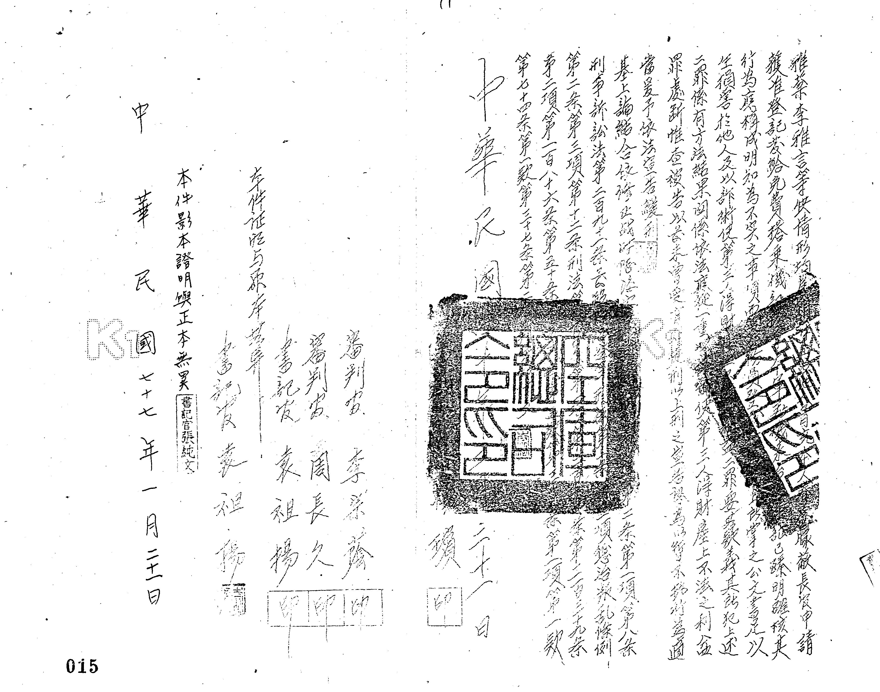 - 法條:修正戰時陸海空軍審判簡易規程第2條第1項、第8條;刑事訴訟法第291條前段;陸海空軍刑法第1條第2項;懲治叛亂條例第2條第3項、第12條;刑法第100條第1項、第339條第2項、第186條、第50條、第74條第1款、第37條第2項