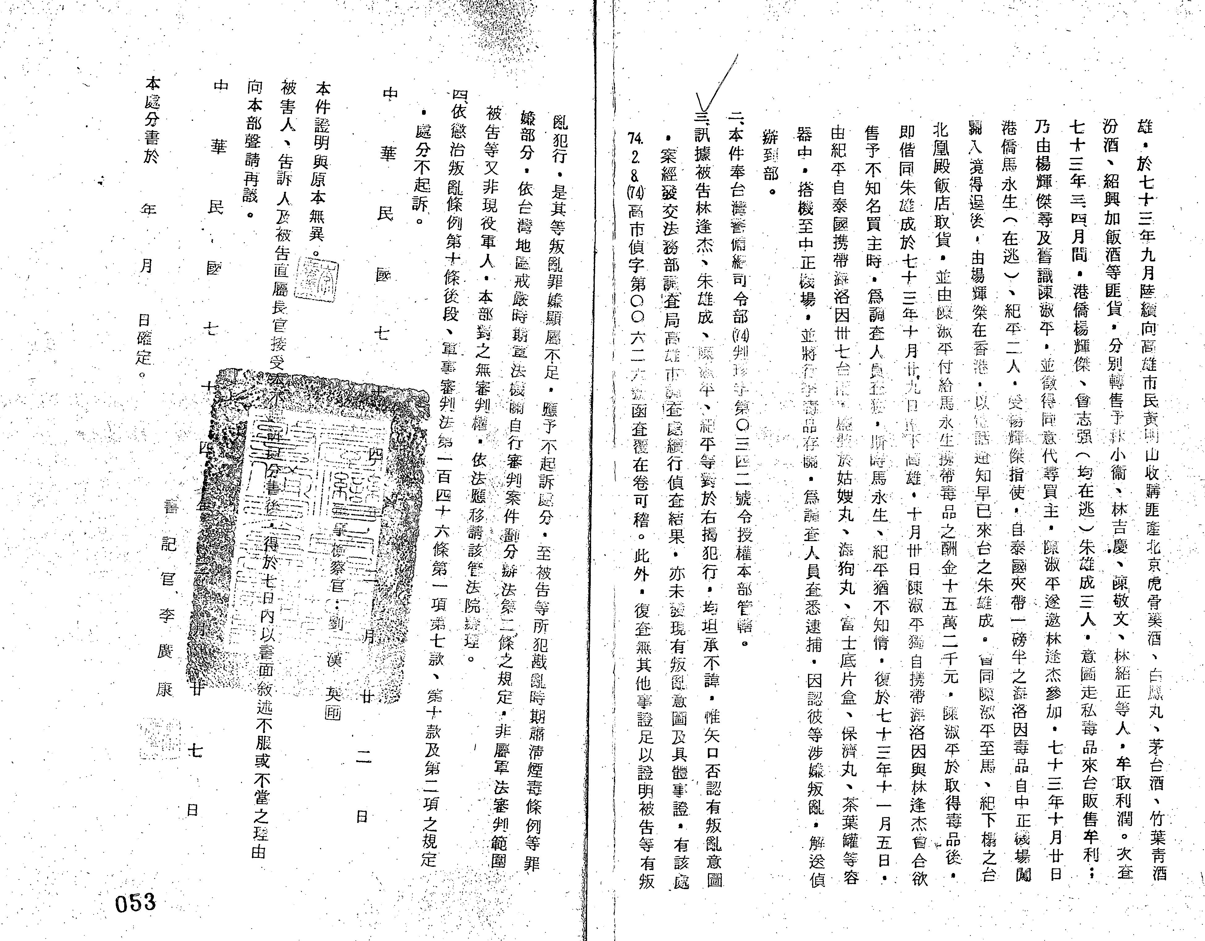 法條:懲治叛亂條例第10條後段;軍事審判法第146條第1項第7款、第146條第1項第10款、第146條第2項