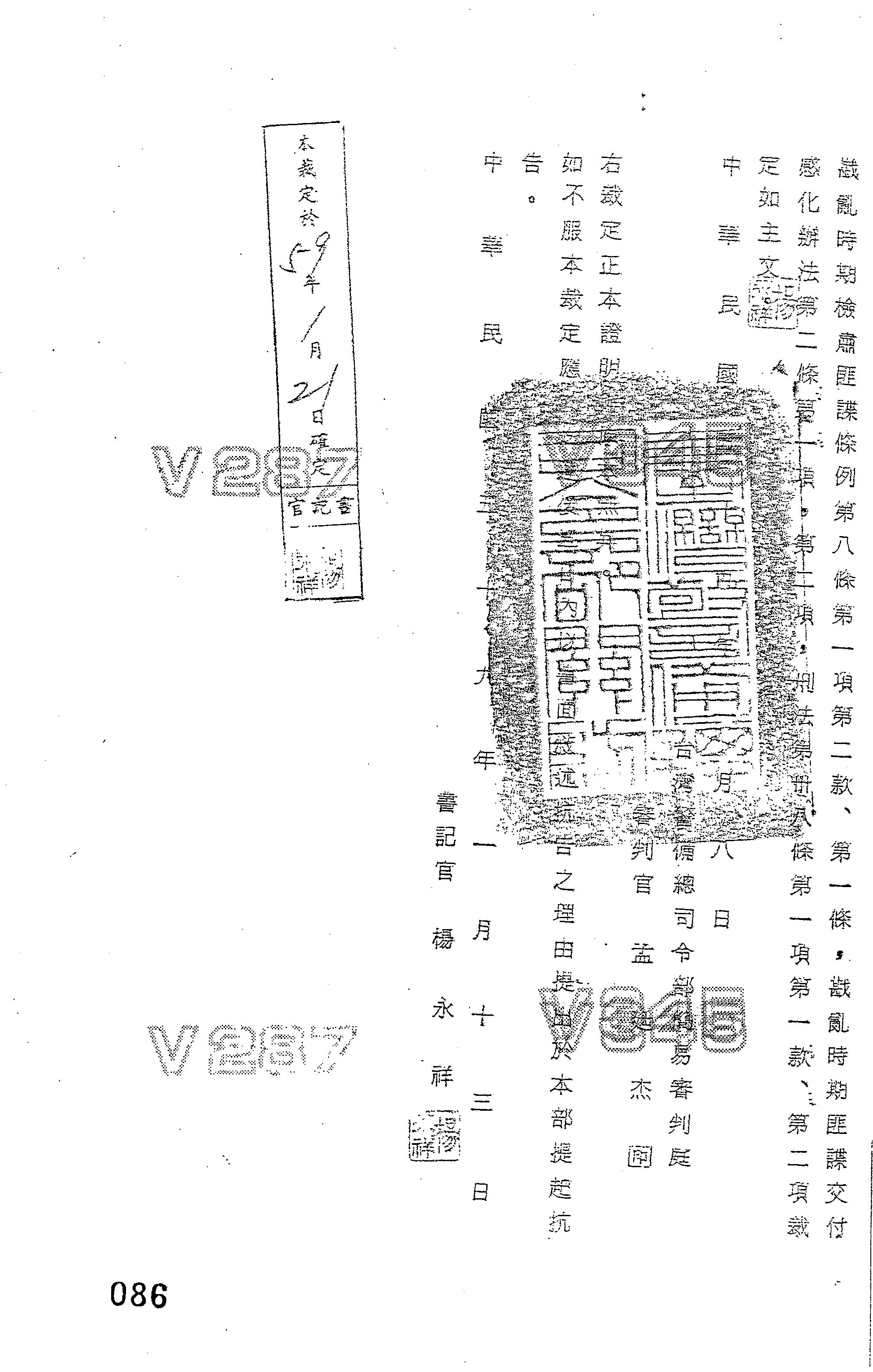 審理機關:臺灣警備總司令部