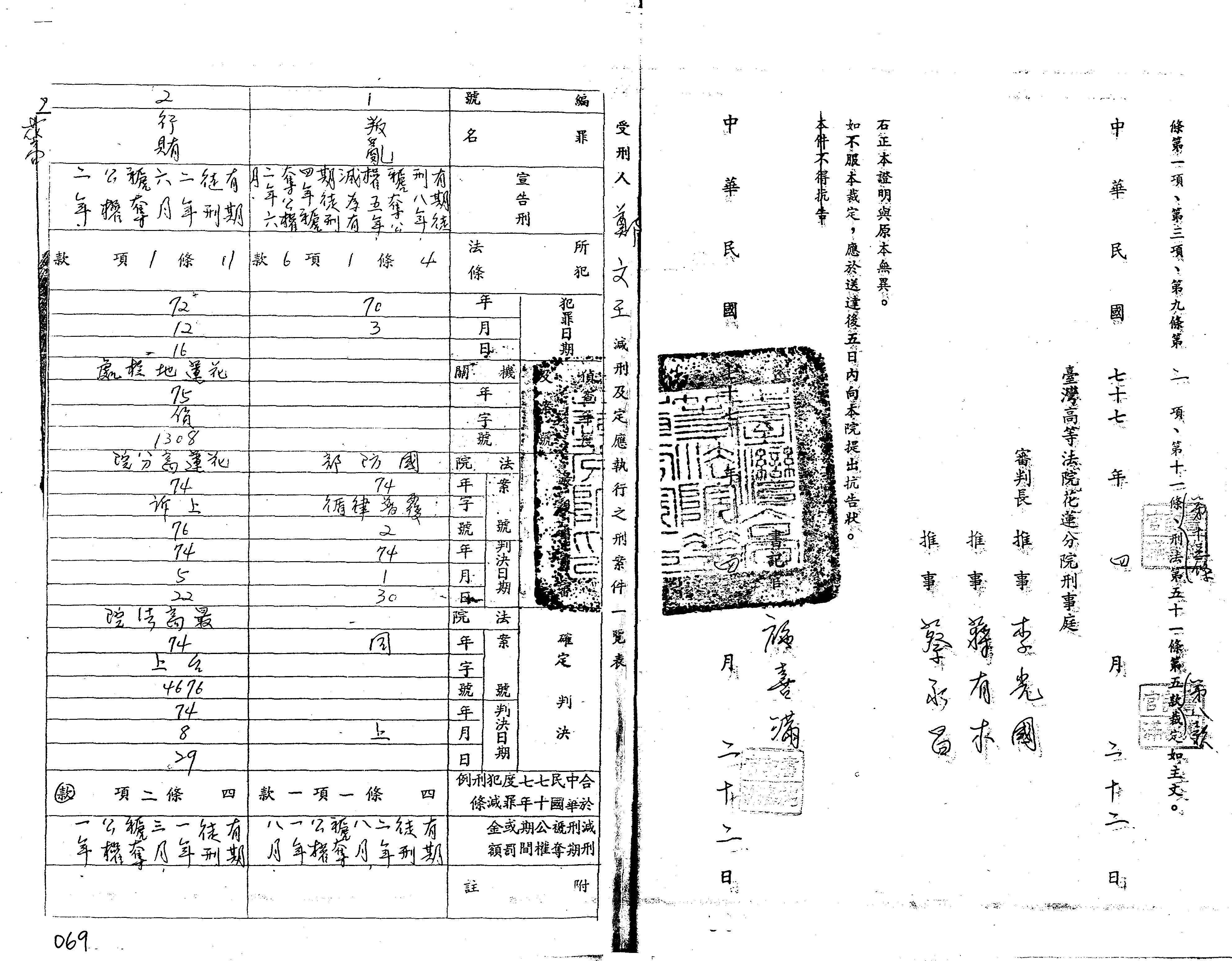 臺灣高等法院花蓮分院77年聲減字第0052號刑事裁定書