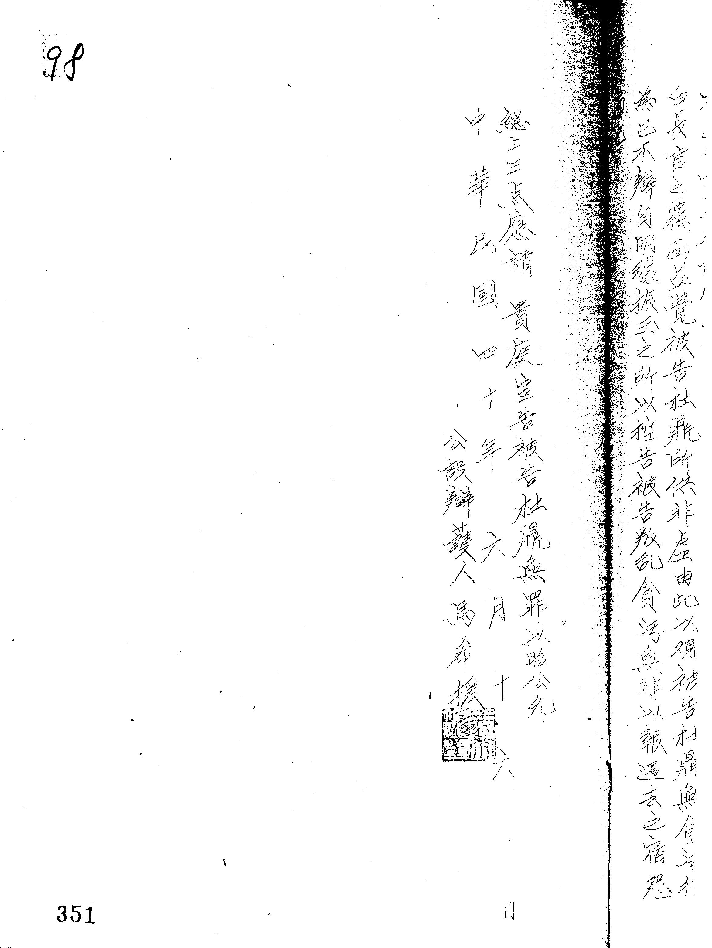 國防部40年勁功字第0209號公設辯護人辯護意旨書