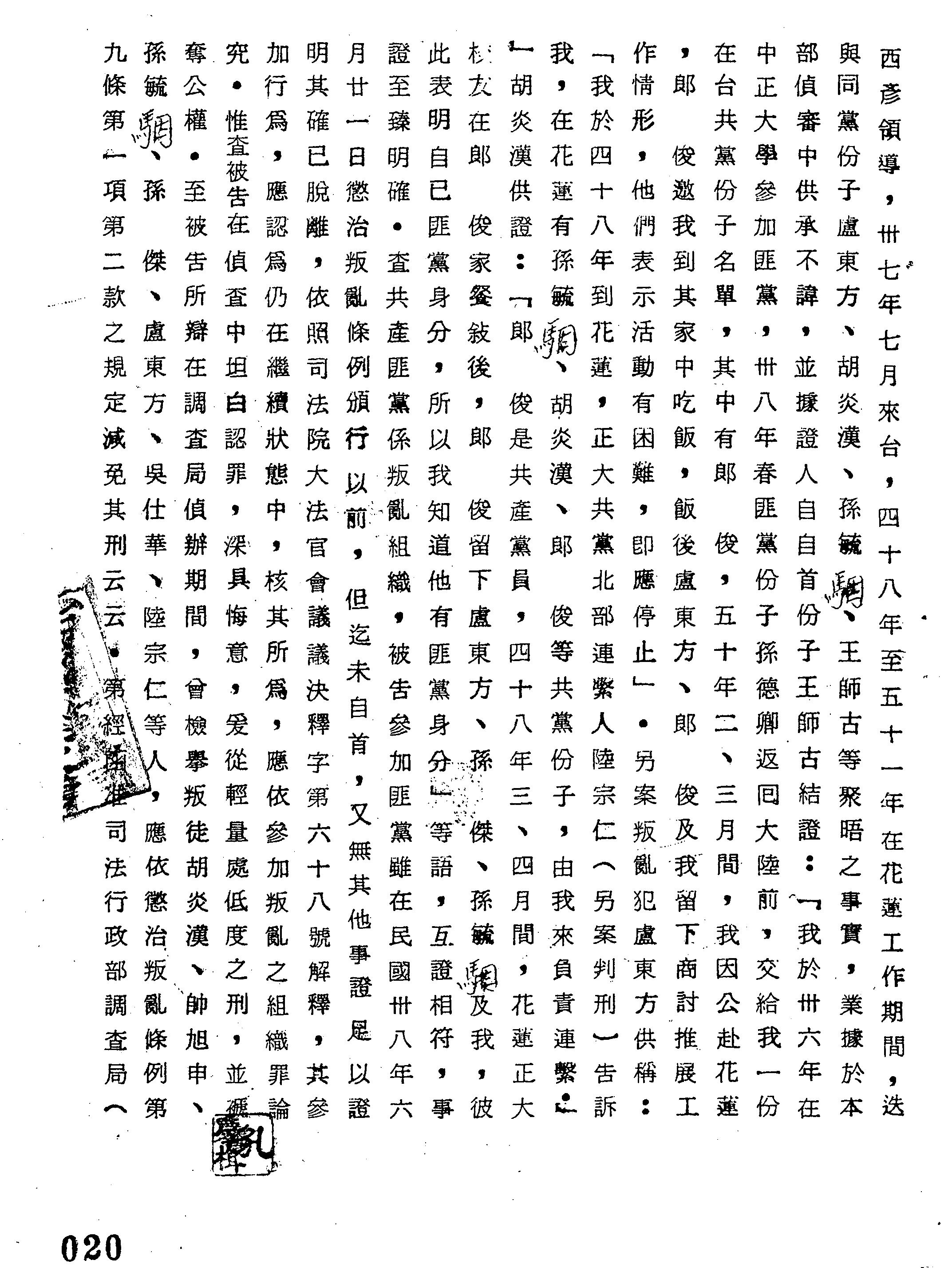 法條:軍事審判法第173條前段;懲治叛亂條例第10條後段、第12條;刑法第37條第2項