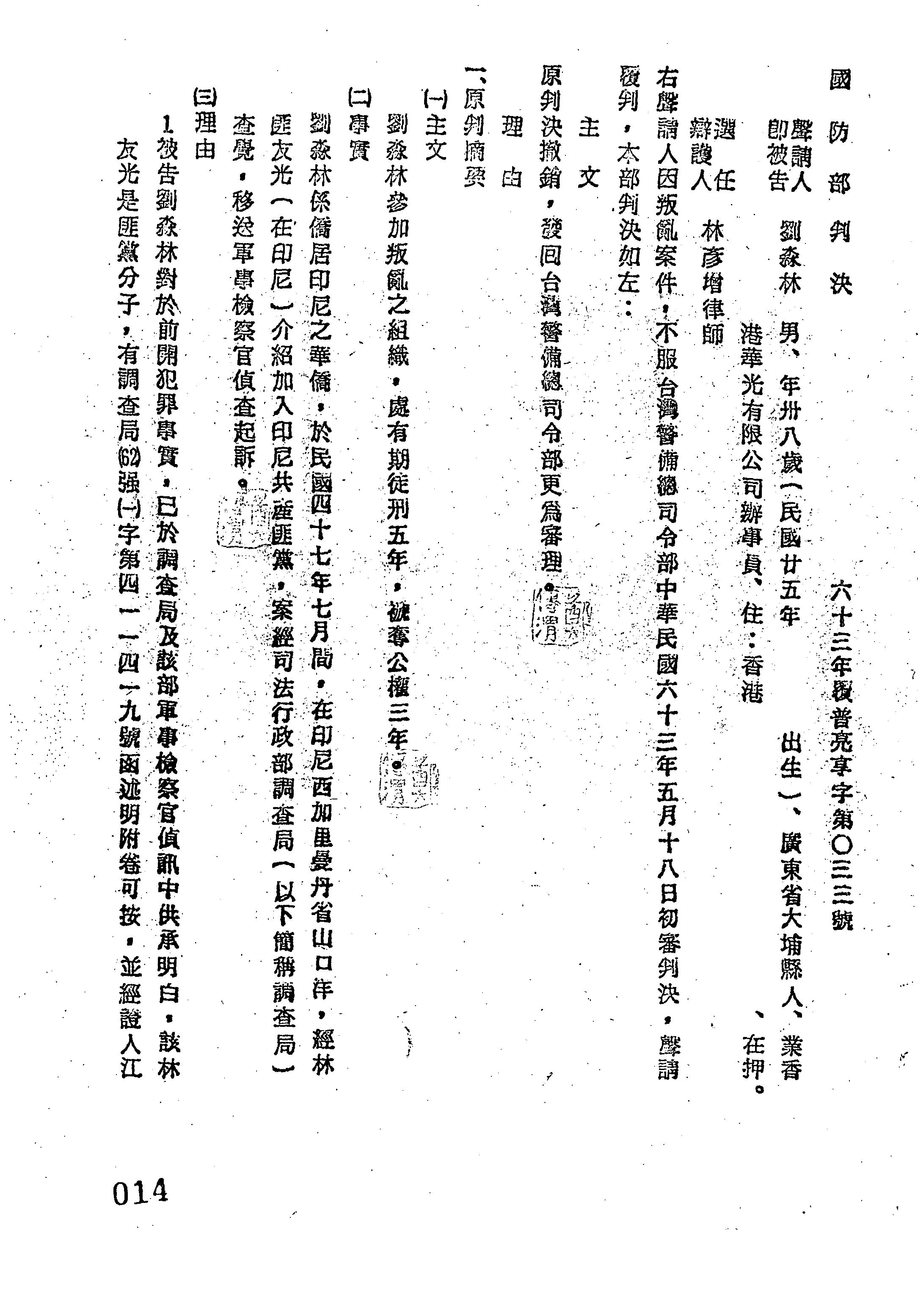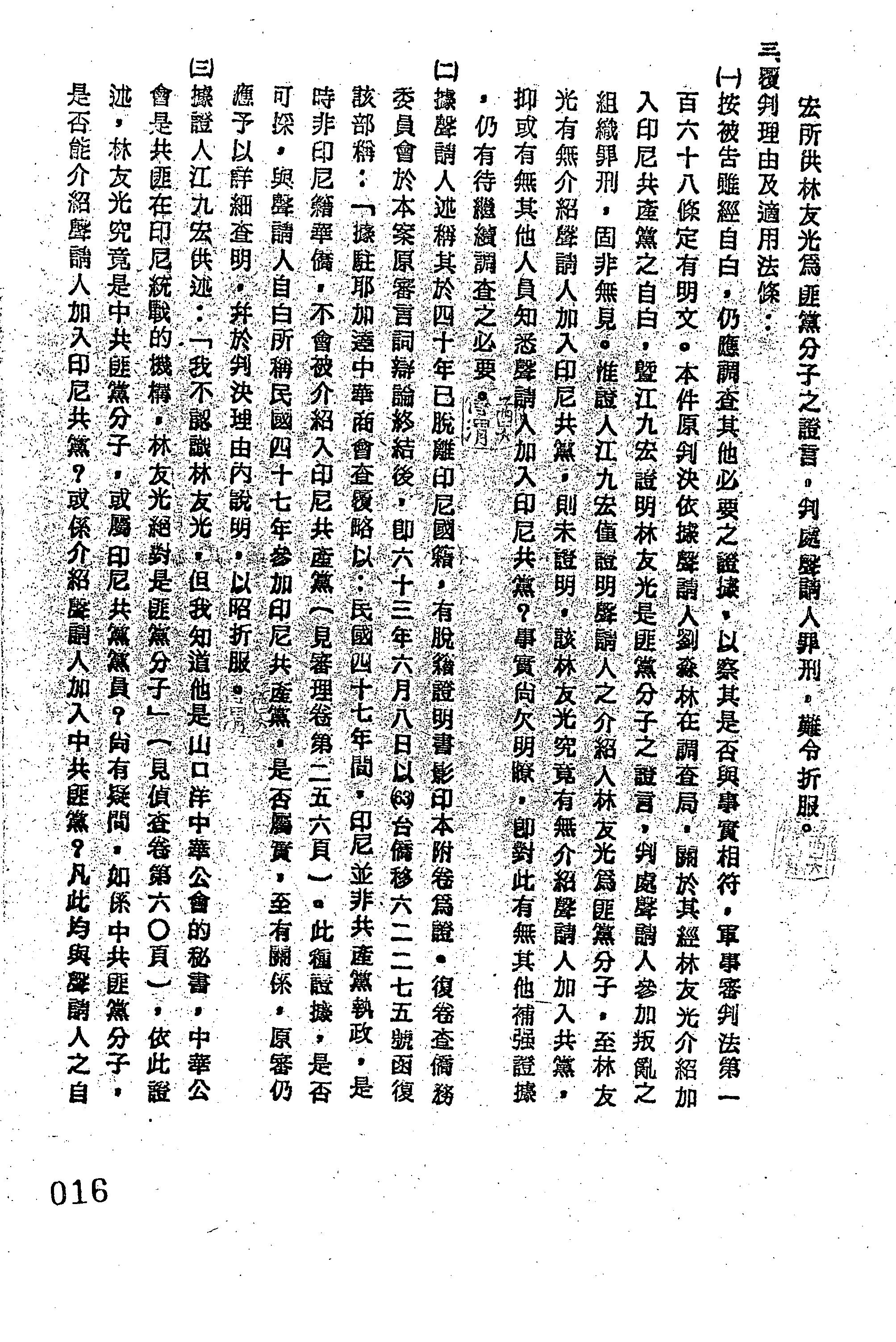 裁判書主文/要旨:原判決撤銷,發回台灣警備總司令部更為審理。