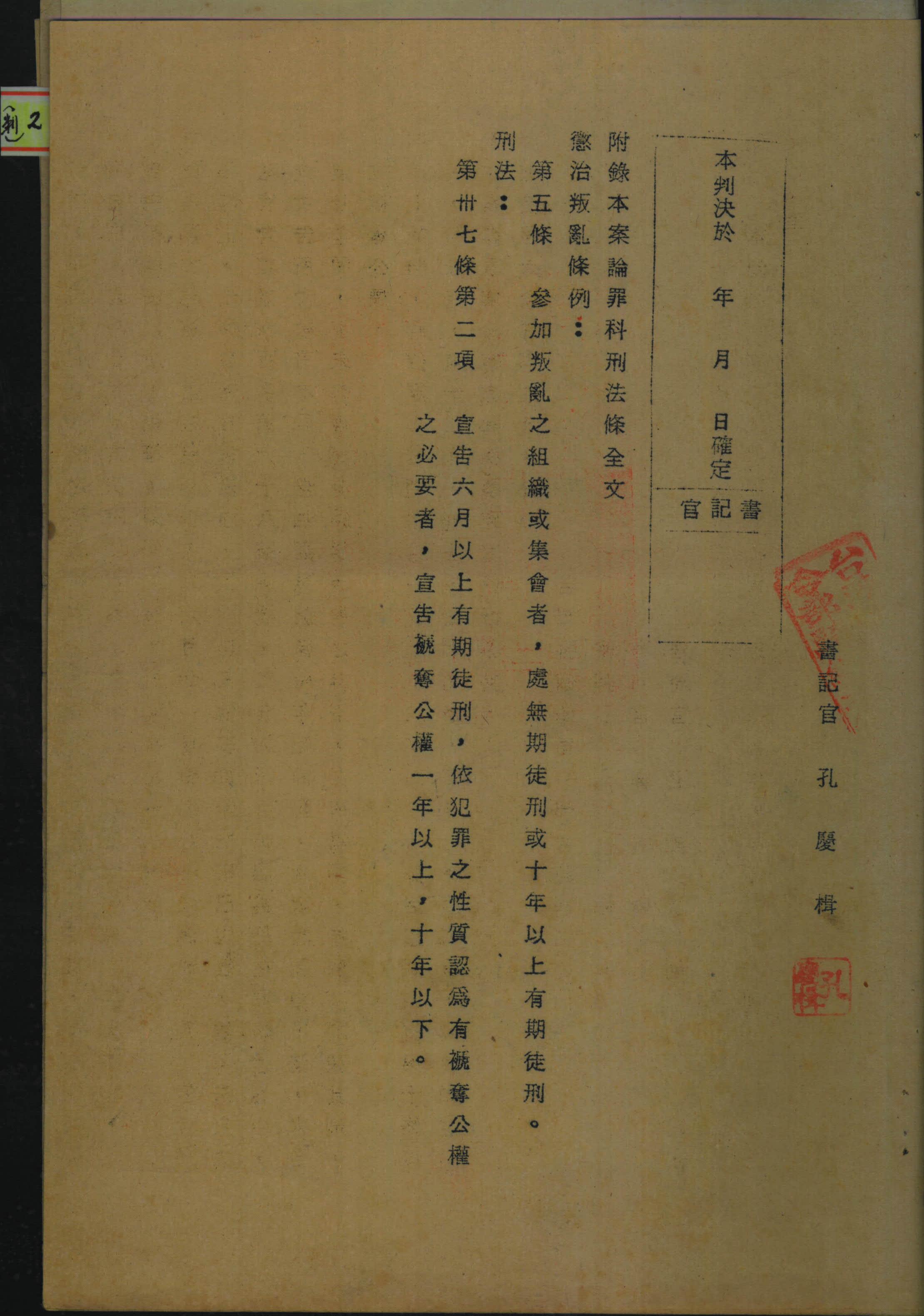 法條:軍事審判法第173條前段;懲治叛亂條例第10條後段、第5條、第12條;刑法第59條、第37條第2項