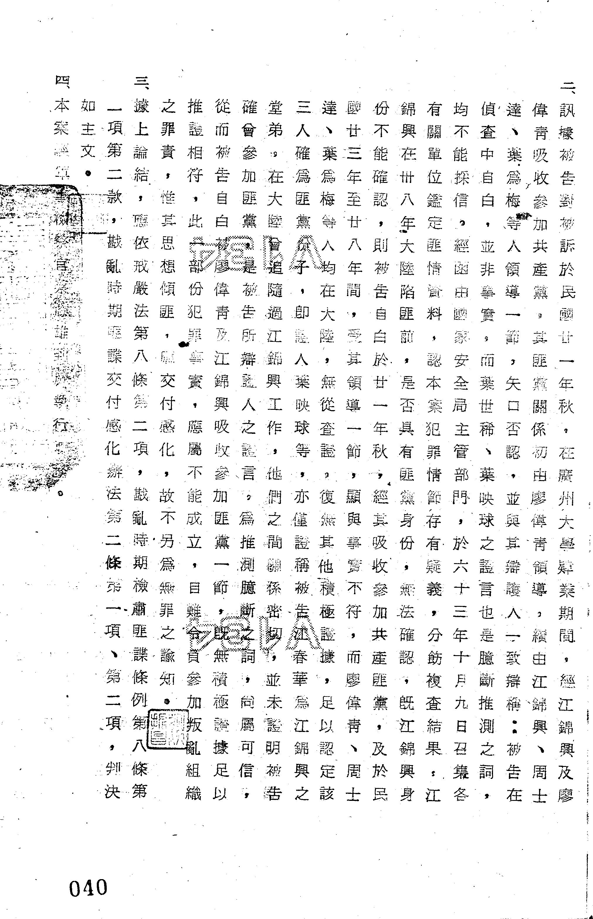 法條:戒嚴法第8條第2項;戡亂時期檢肅匪諜條例第8條第1條第2款;戡亂時期匪諜交付感化辦法第2條第1項、第2條第2項