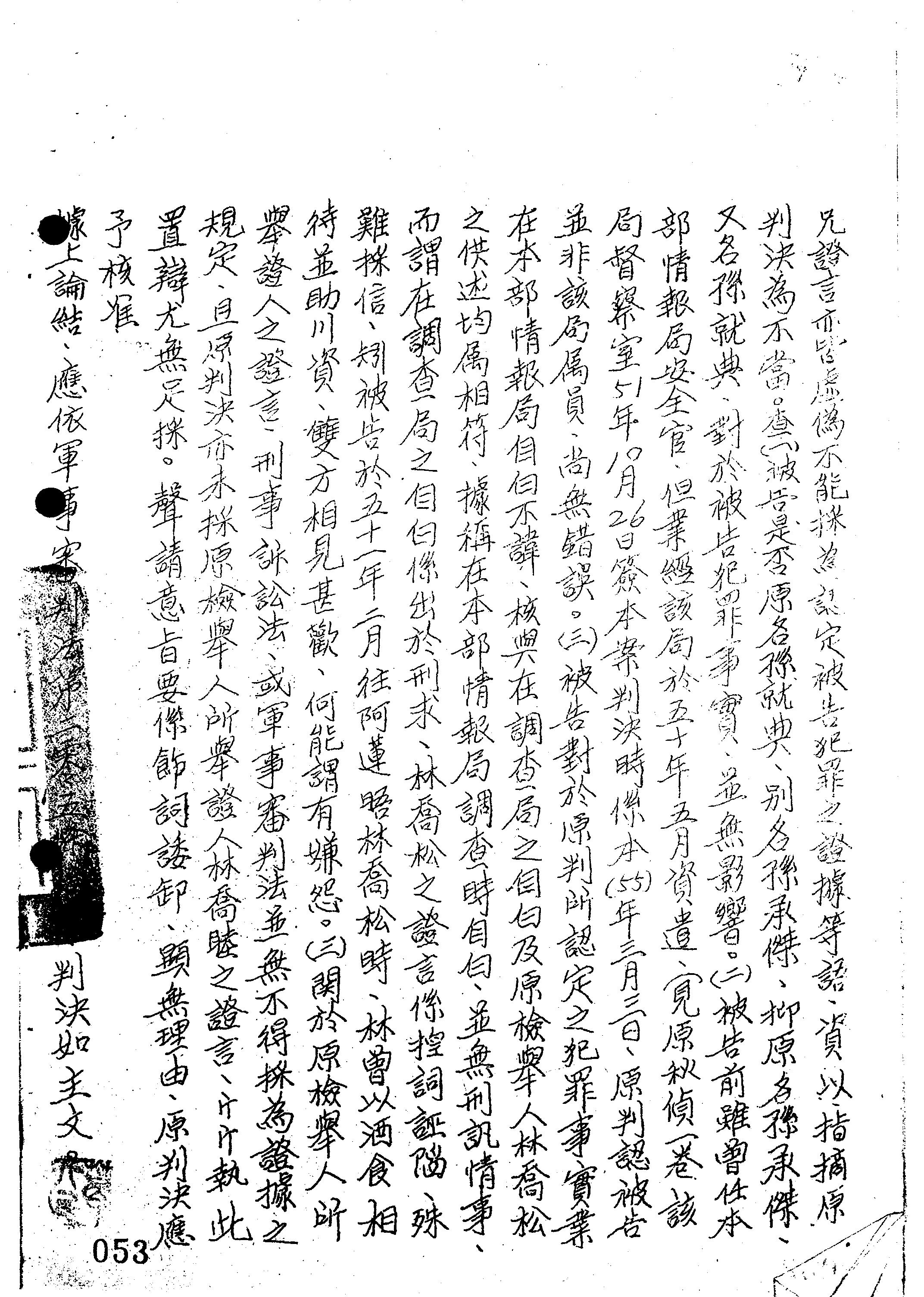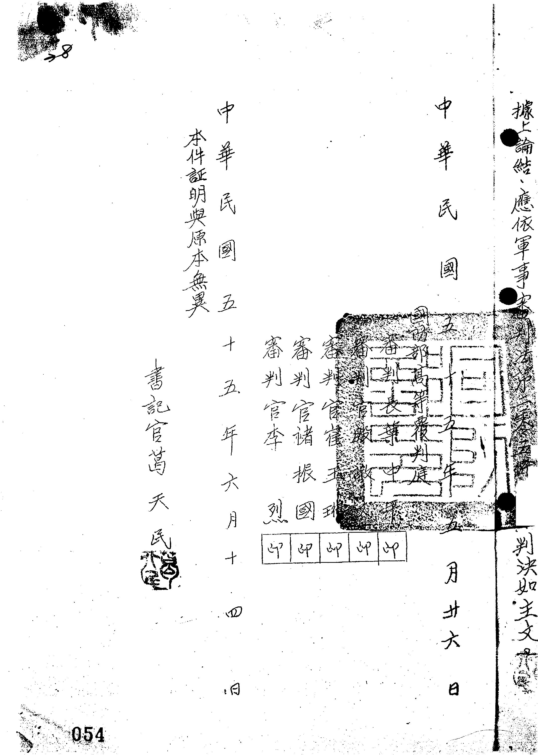國防部55年覆高動字第0011號判決書