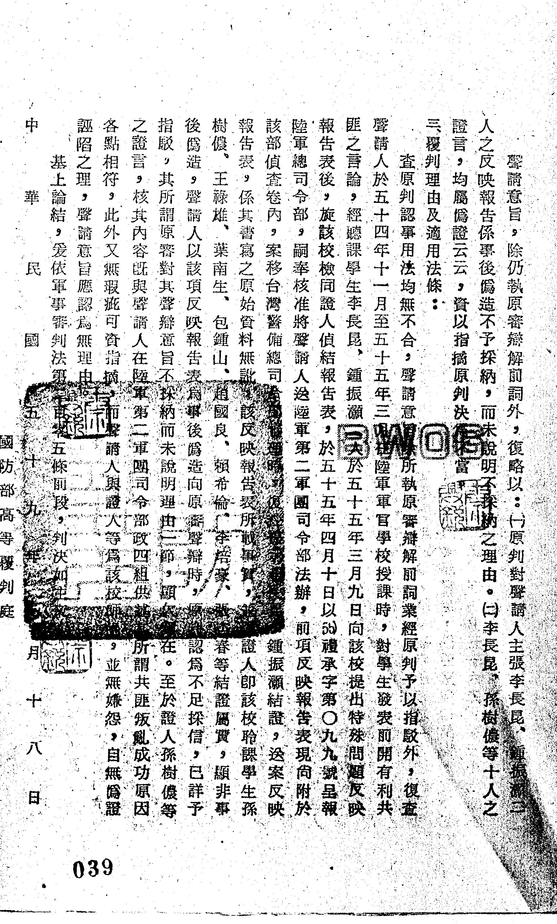 國防部59年覆高輯字第0030號判決書