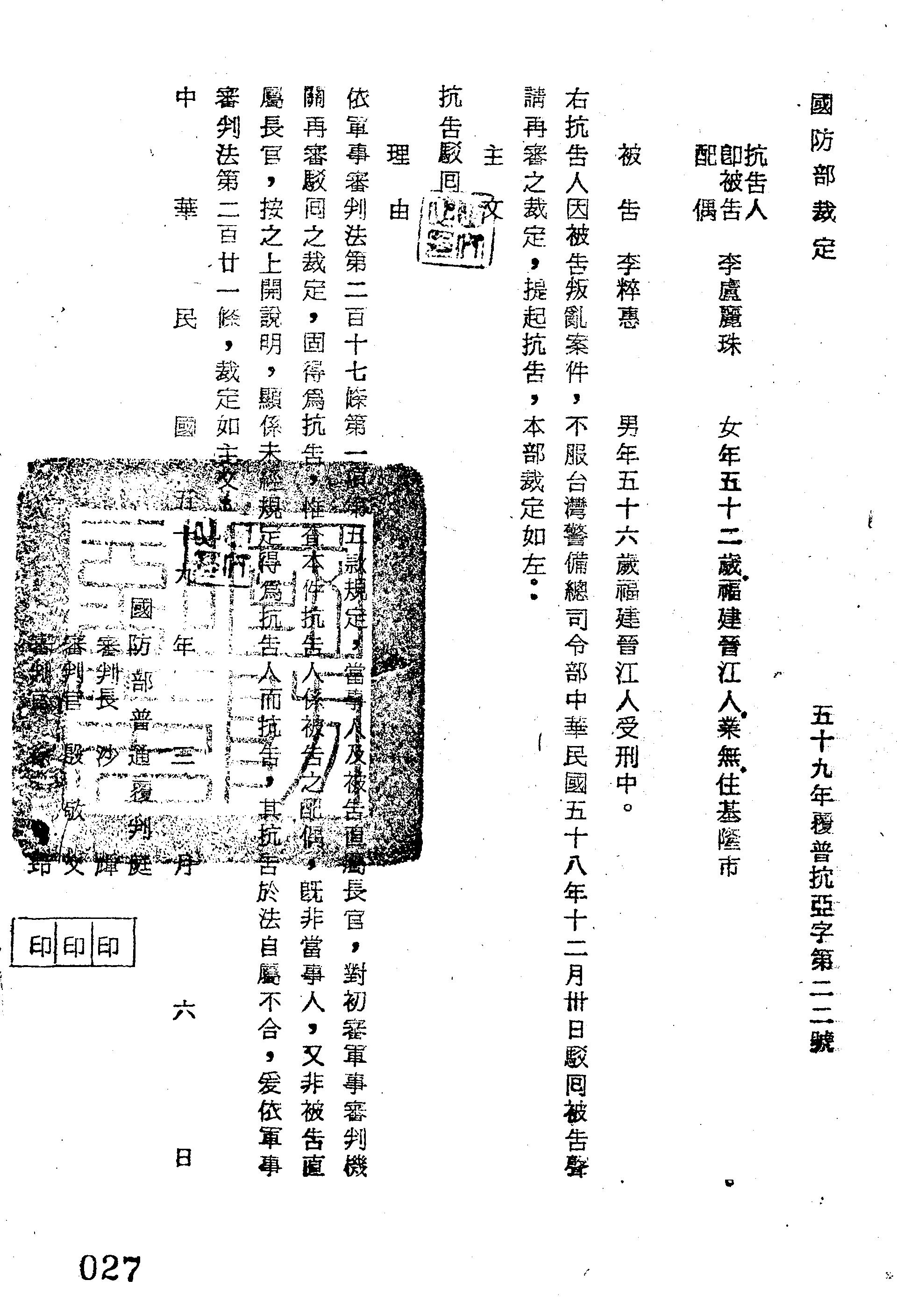 (59)警檢聲字第0052號/(59)勁雷字第0354號