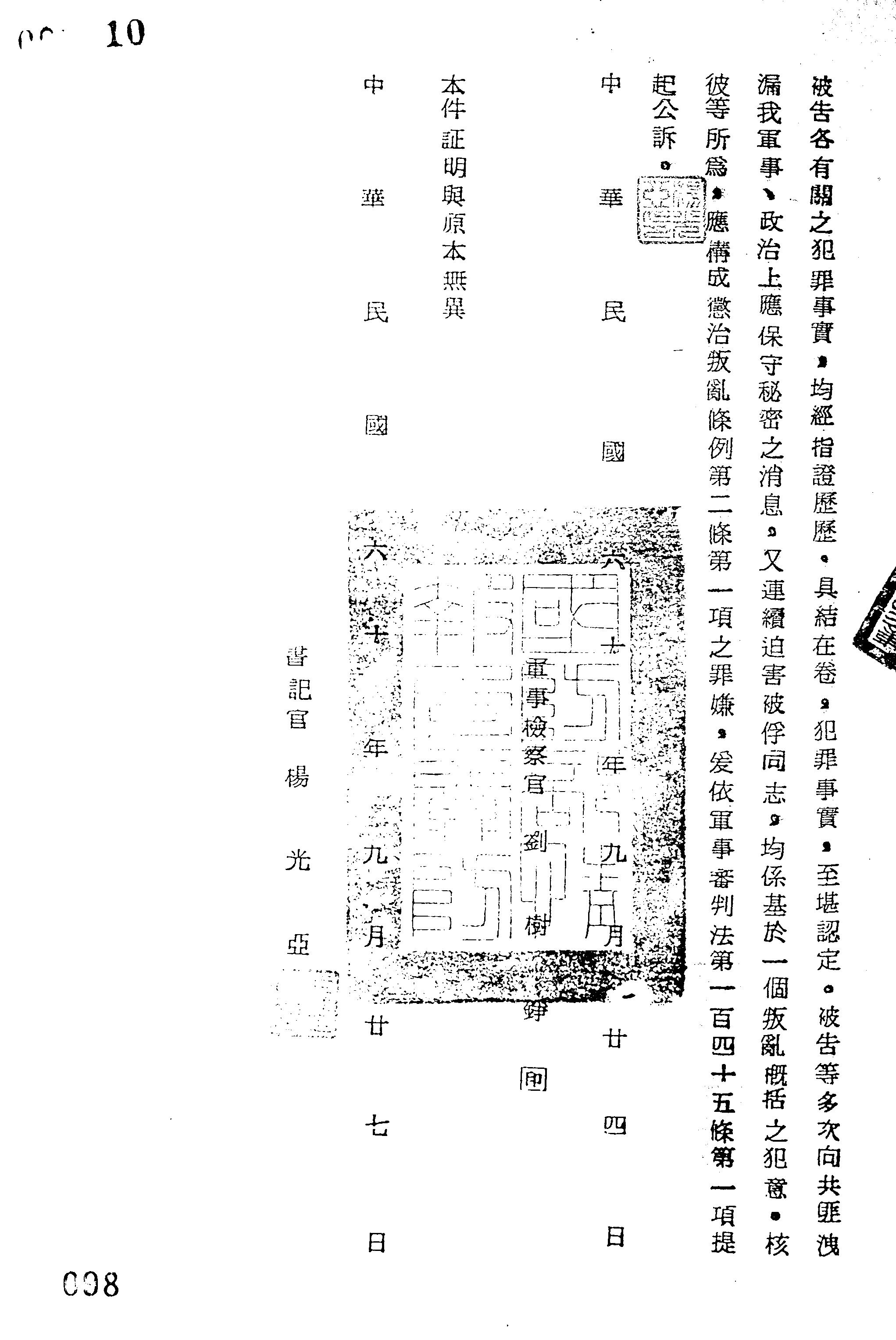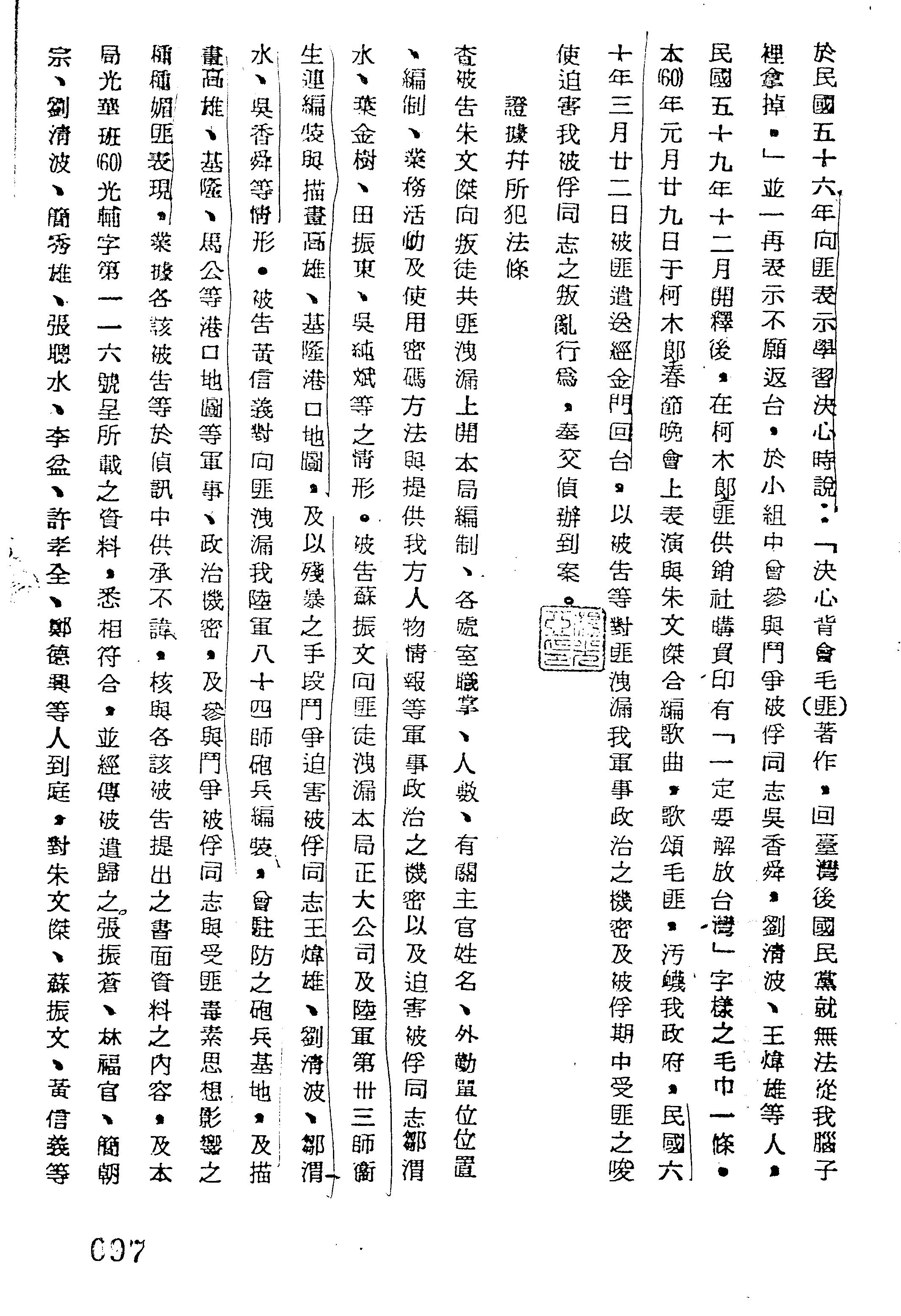 裁判書主文/要旨:朱文傑等因民國六十年新檢字第○一三號叛亂等罪嫌一案業經偵查終結認應提起公訴。