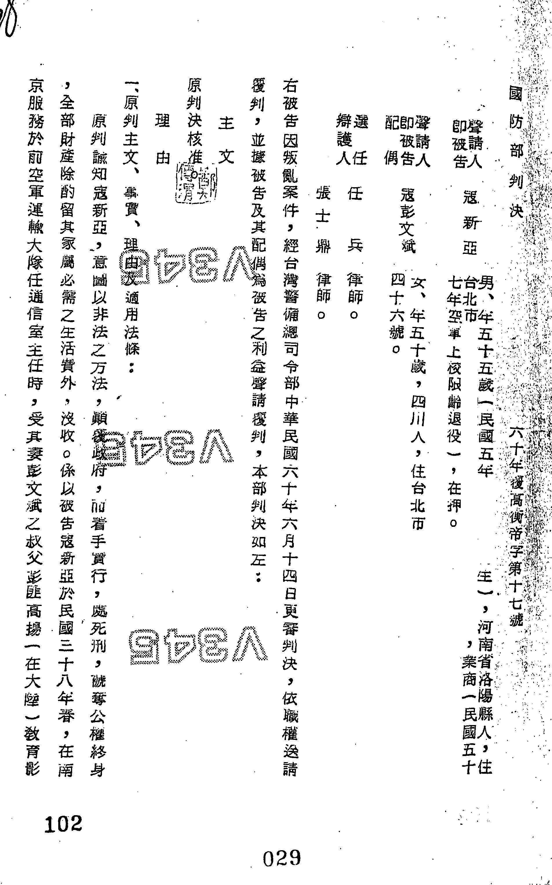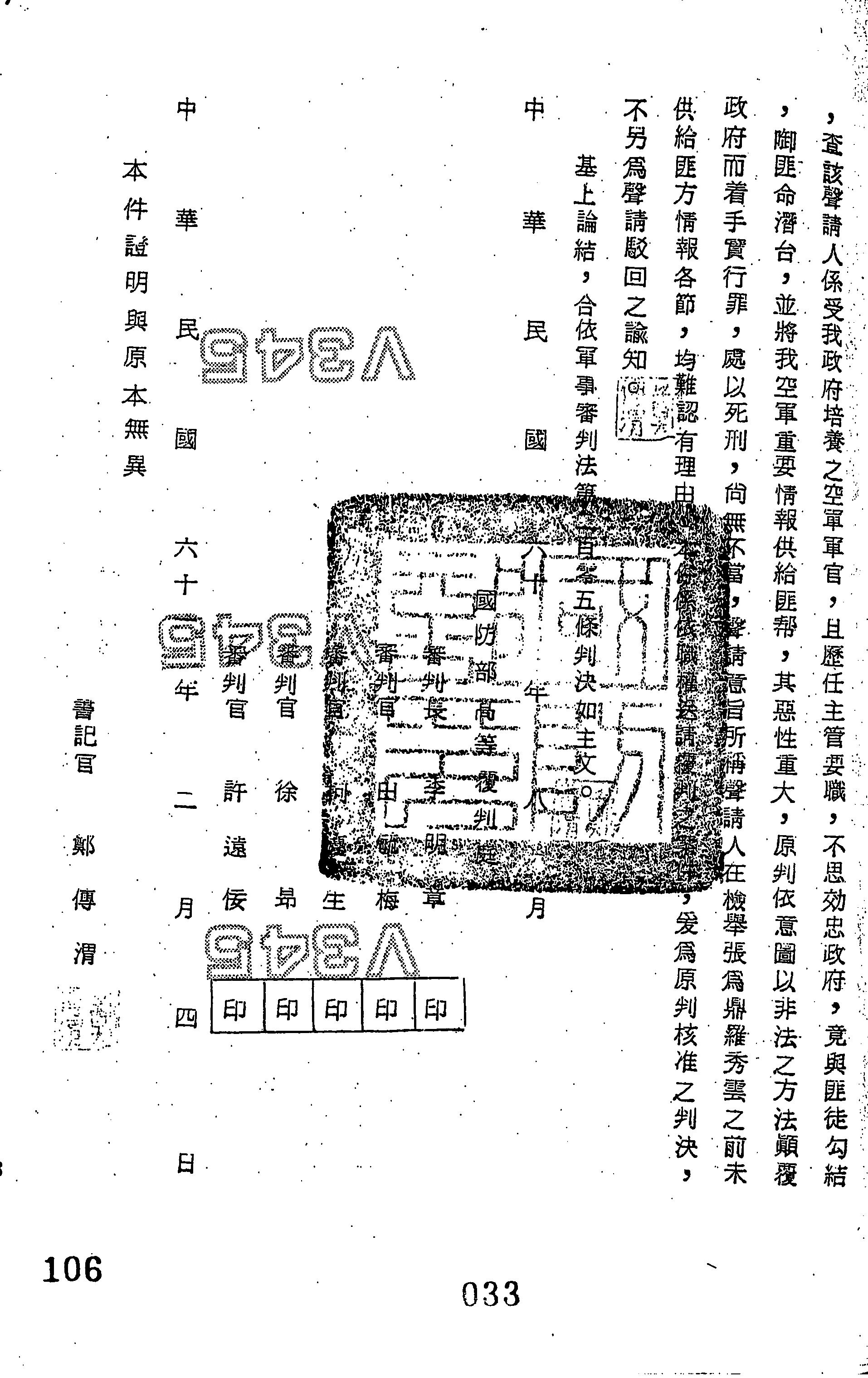 國防部60年覆高衡帝字第0017號判決書