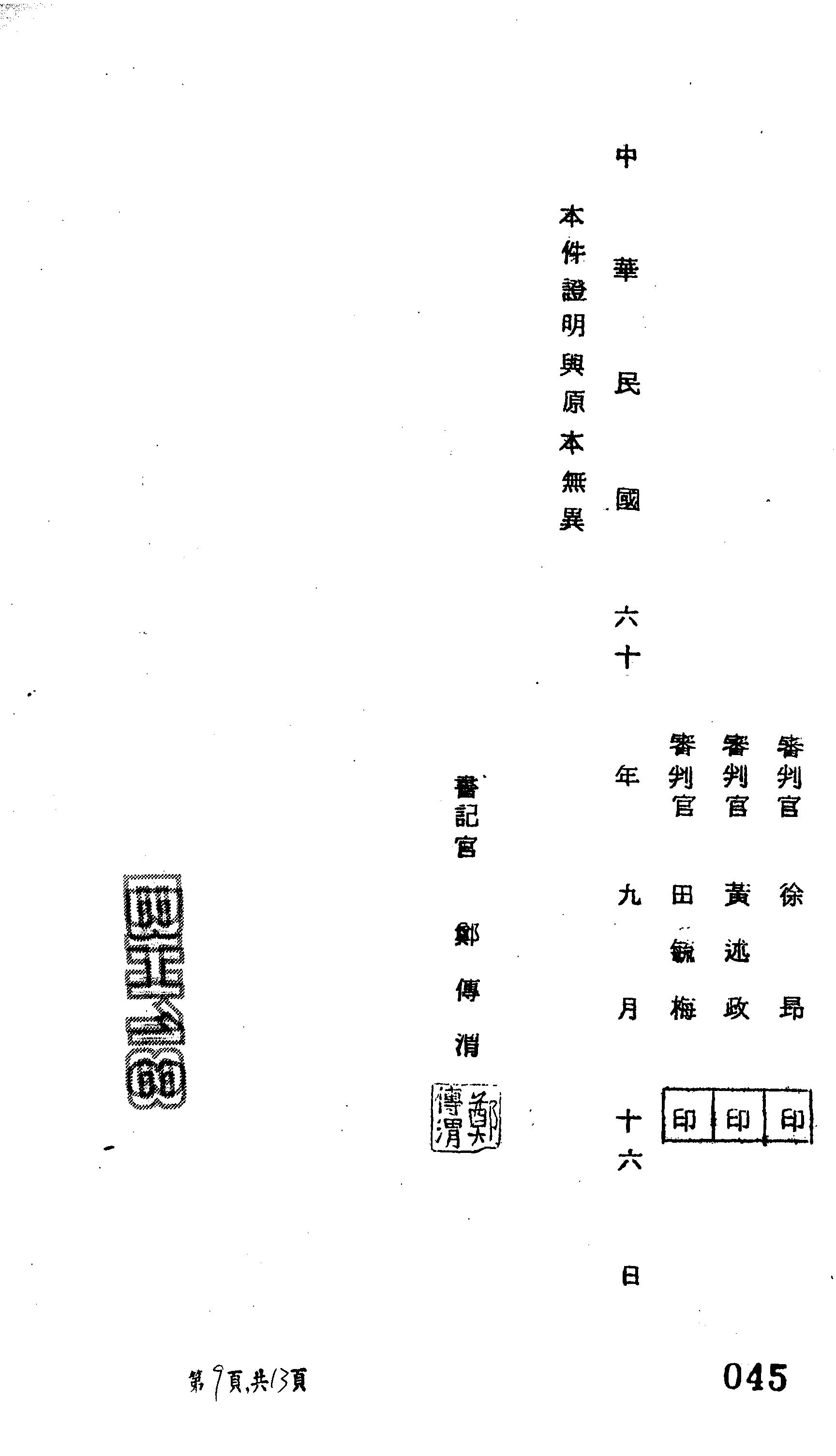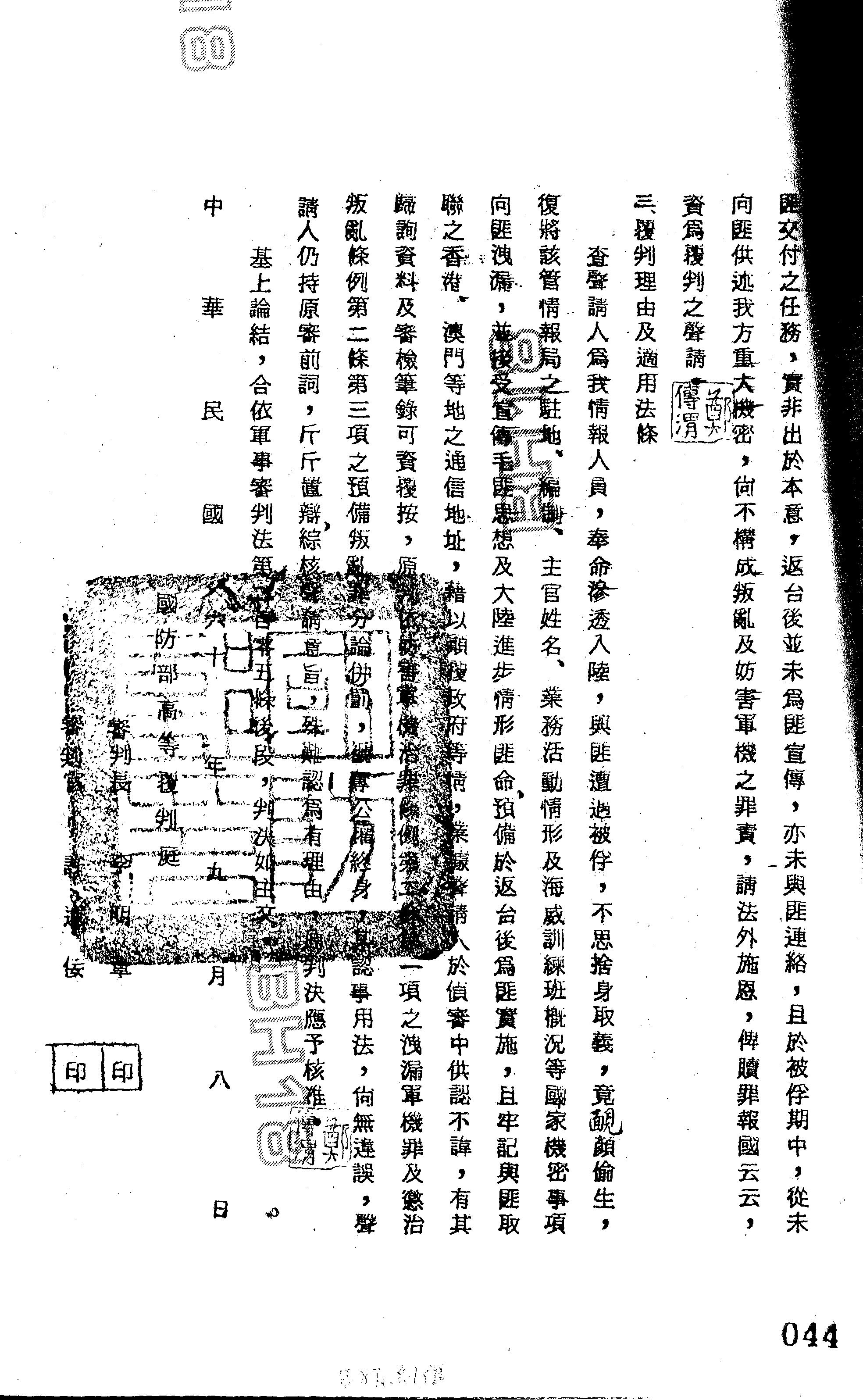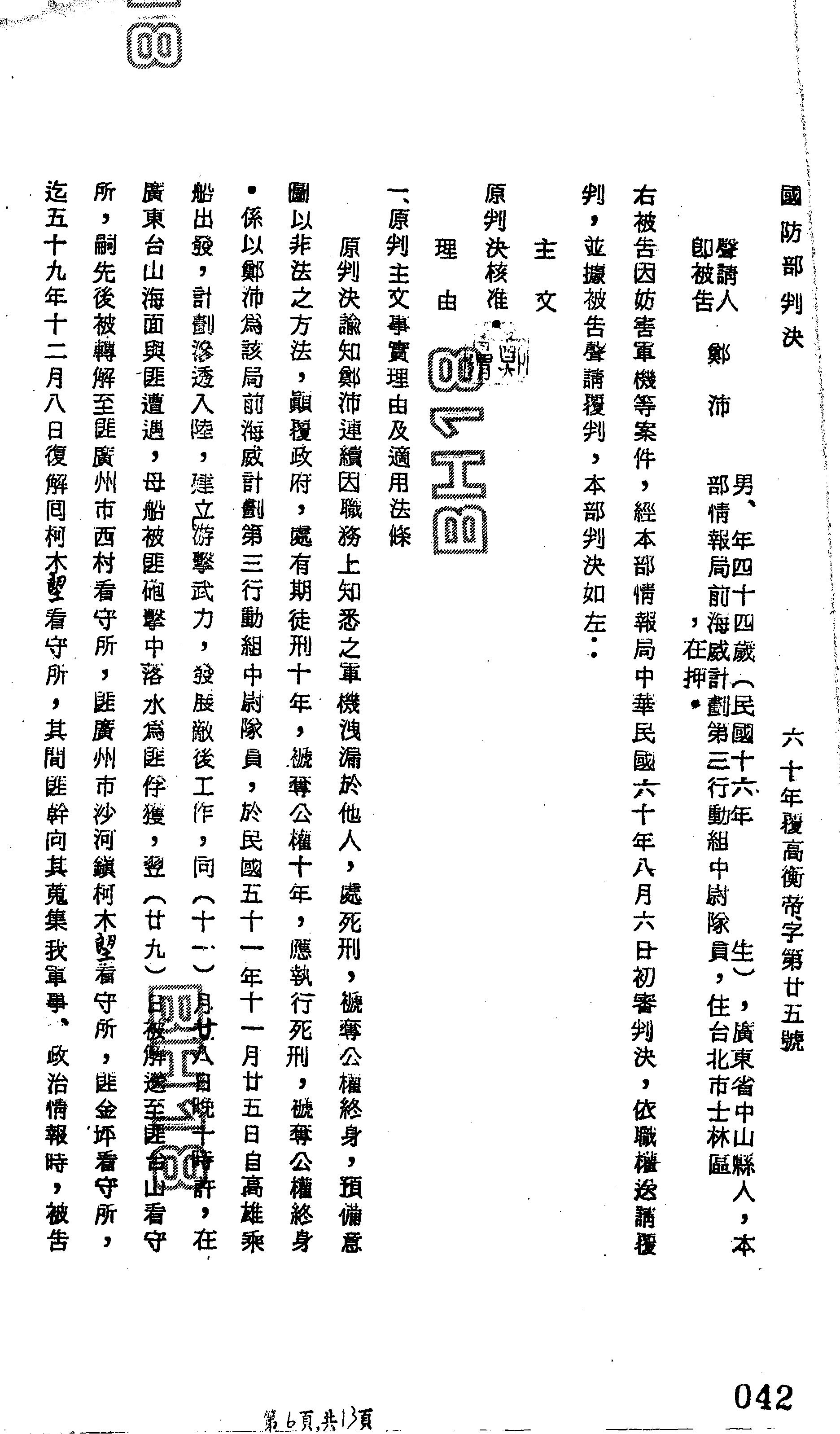 國防部60年覆高衡帝字第0025號判決書