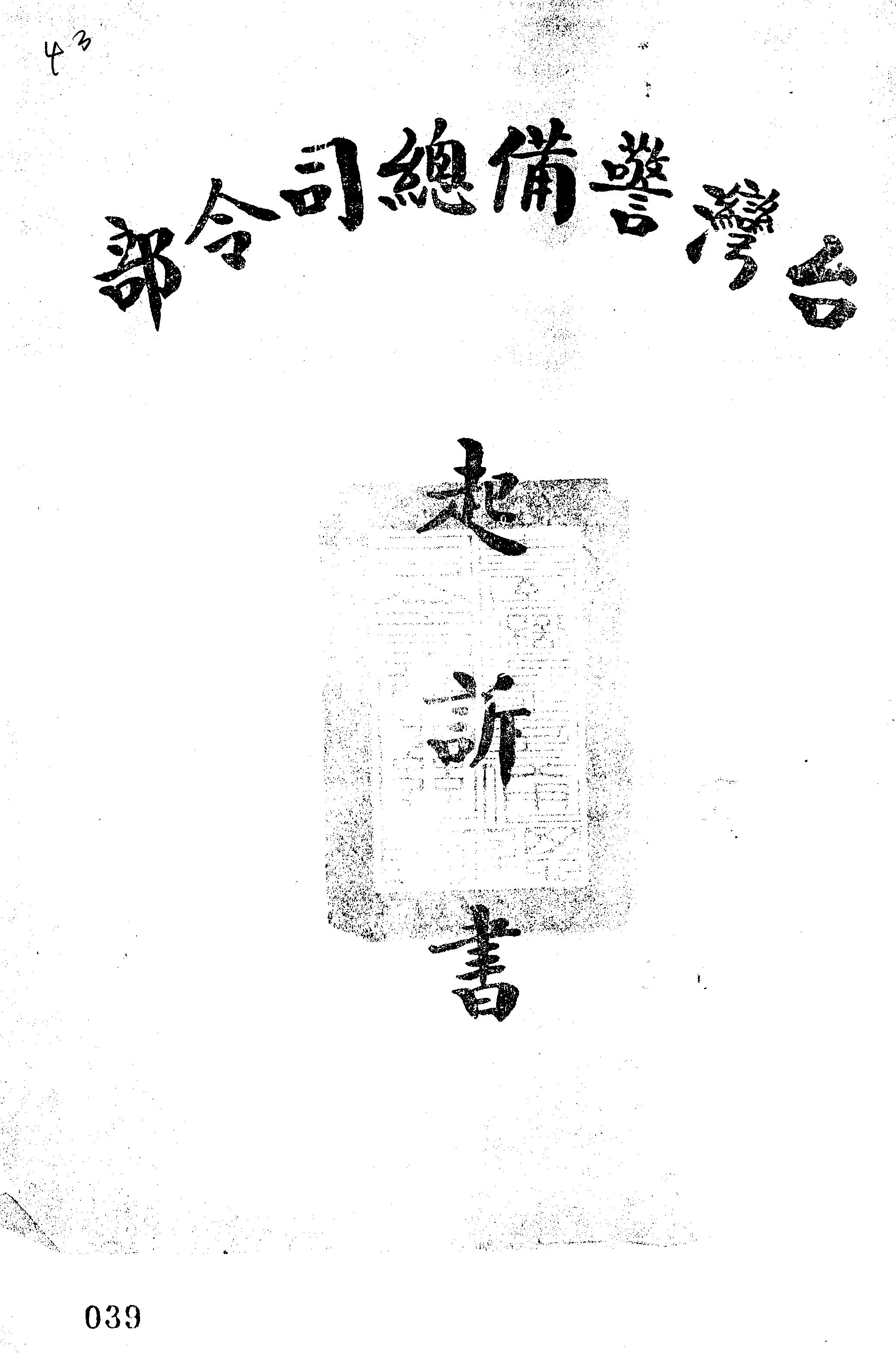 臺灣警備總司令部60年警檢訴字第0081號/60年遵戎字第0976號軍事檢察官起訴書