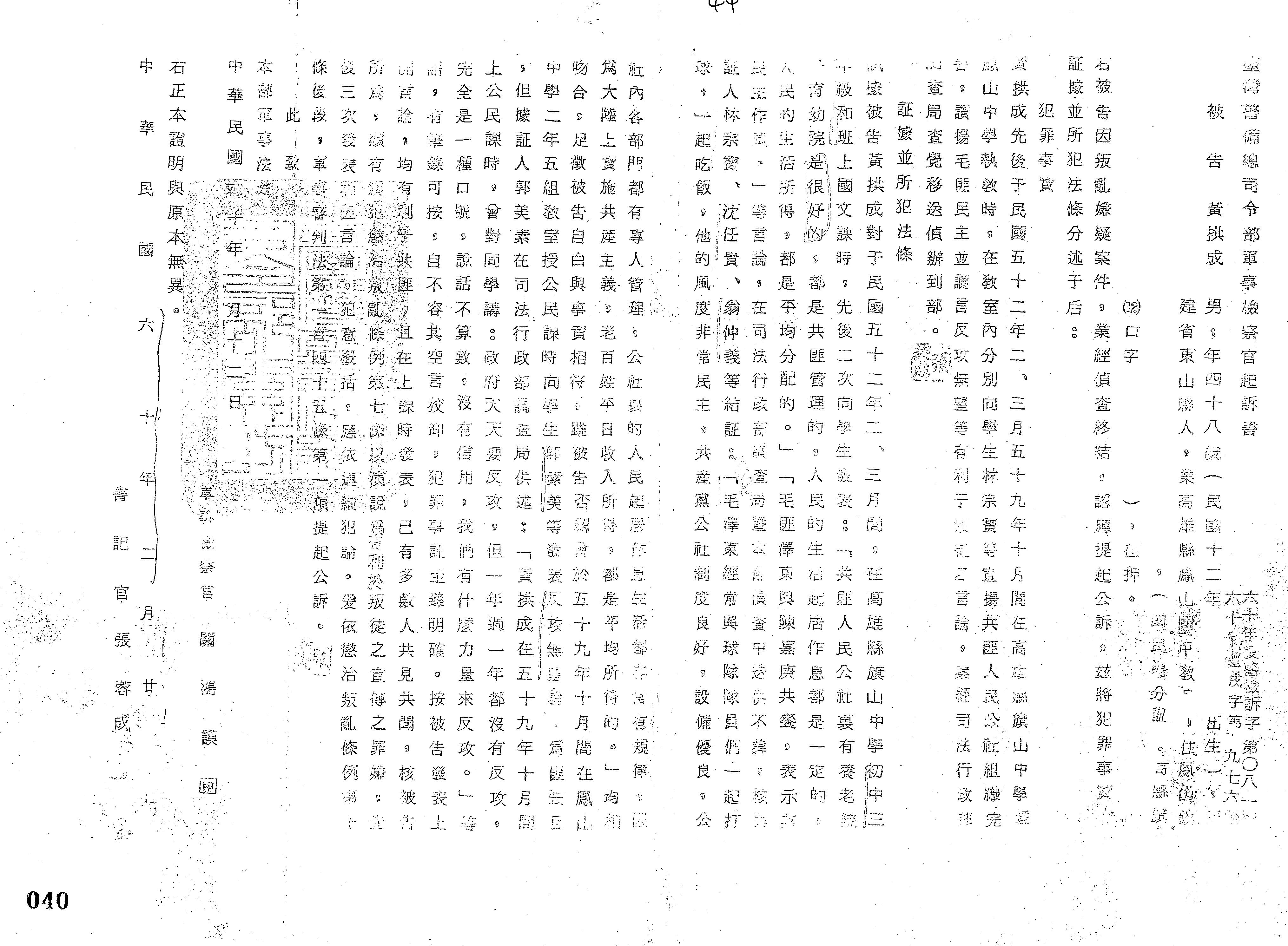 裁判書主文/要旨:黃拱成因叛亂嫌疑案件業經偵查終結認應提起公訴。