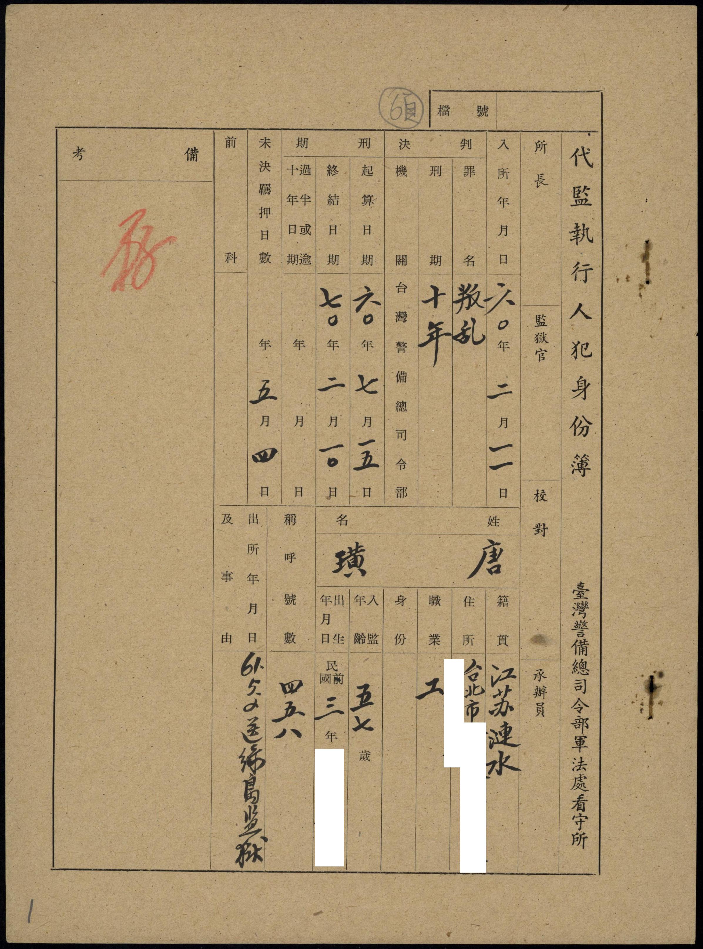 • 執行刑度刑期/受難事實: 有期徒刑10年,經減刑,6年8月開釋