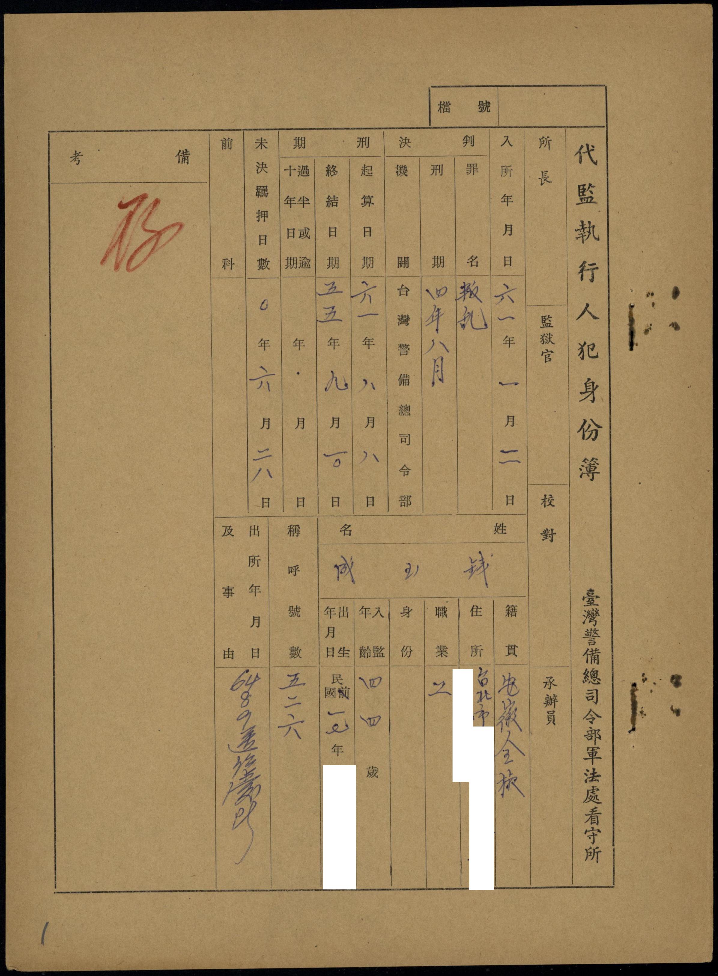 • 裁判/受難年度: 民國61年