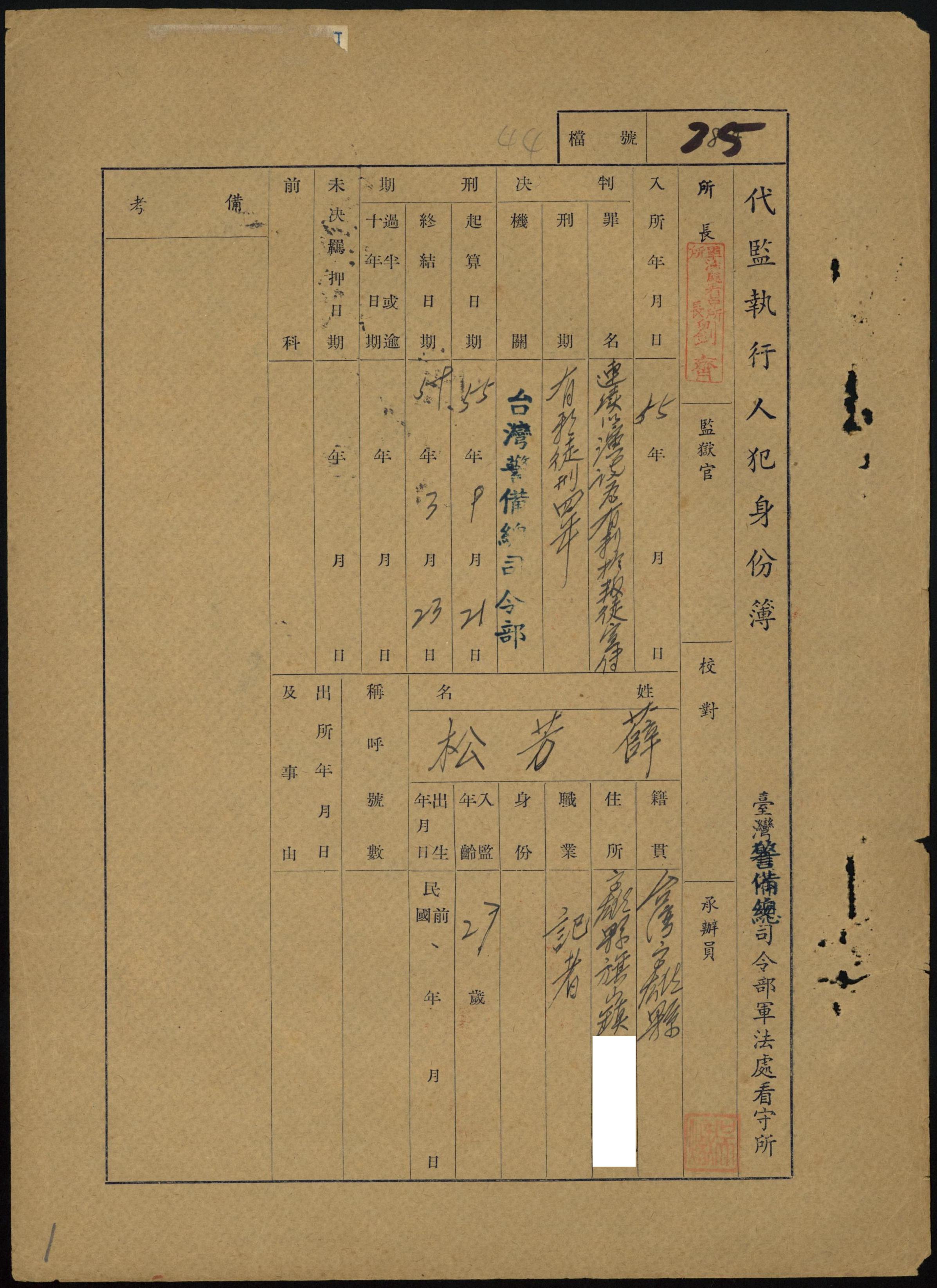 - 薛芳松 男 1940年出生 臺灣 高雄縣人