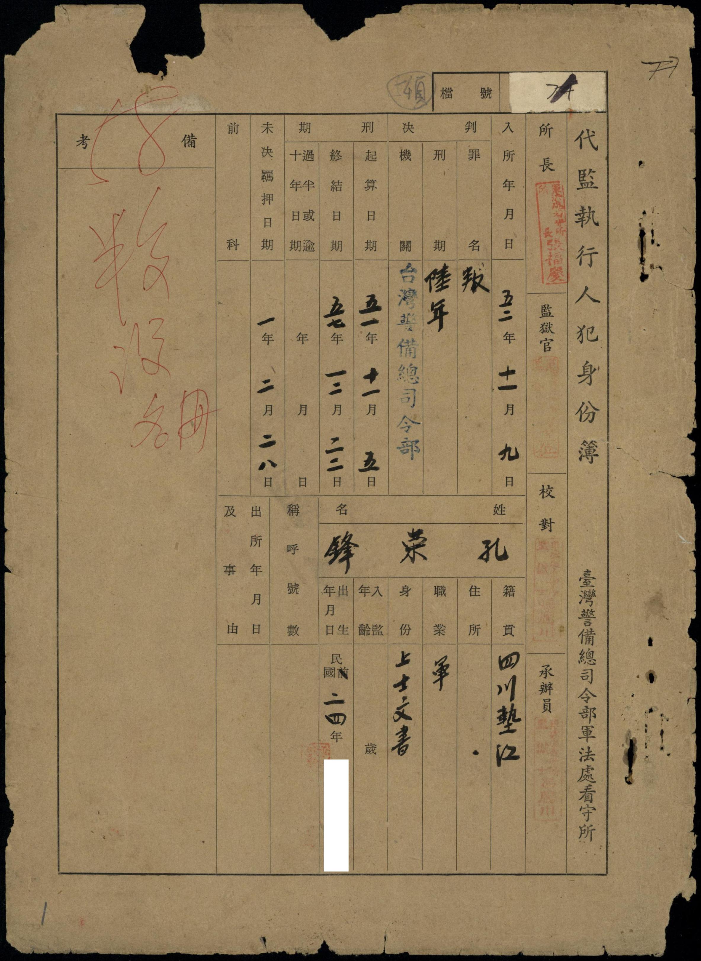 • 當時職業: 第三三三二部隊工兵群框桁橋連上士文書